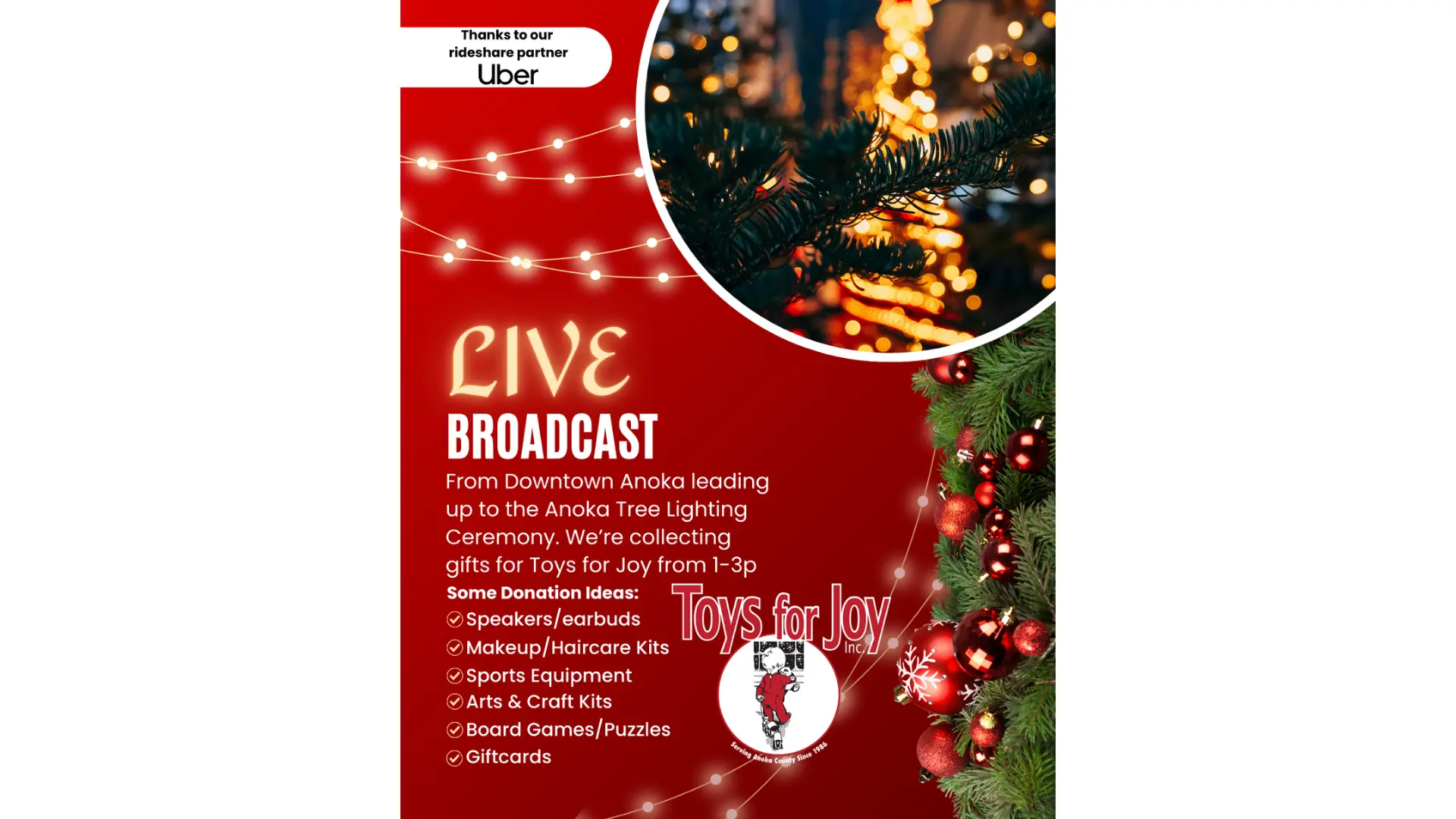 Join Geoff Jones right before the Anoka Tree Lighting Ceremony for a Toys for Joy Toy Drive with help from our rideshare partner Uber. Bring an unwrapped toy to donate to Toys for Joy, serving greater Anoka